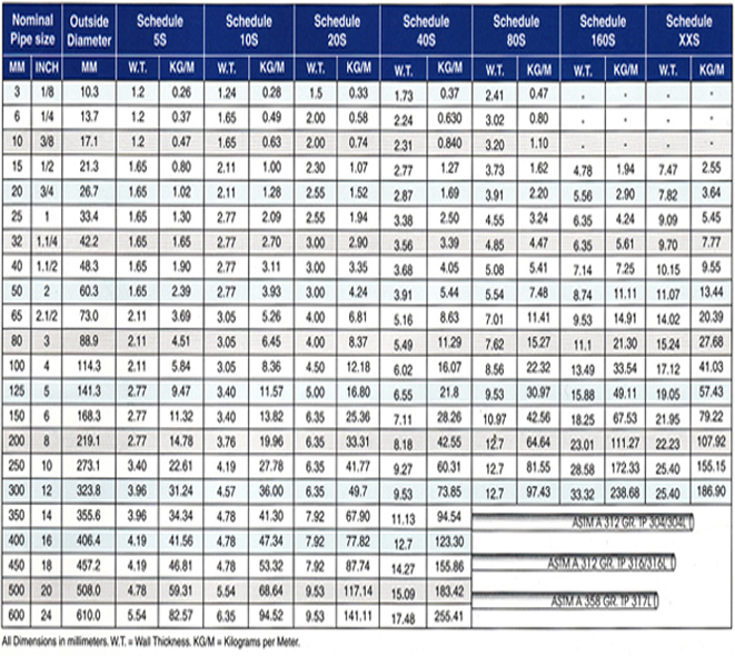 Stainless Steel Pipe Dimension ANSI B.36.19