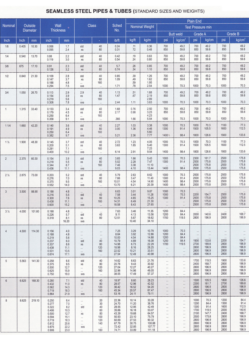 Stainless Steel Pipe Dimension ANSI B.36.19